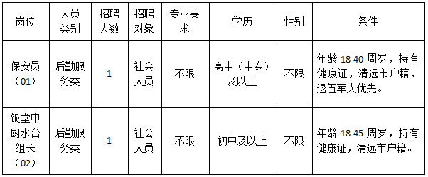 清遠(yuǎn)市清城區(qū)機關(guān)事務(wù)管理局因工作需要,根據(jù)《關(guān)于印發(fā)<清遠(yuǎn)市清城區(qū)機關(guān)事業(yè)單位專項工作聘員、合同制聘員以及后勤服務(wù)類人員管理辦法>的通知》(城區(qū)人社〔2022〕20號)文件精神,面向社會公開招聘后勤服務(wù)類人員2名,現(xiàn)將有關(guān)事宜公告如下: